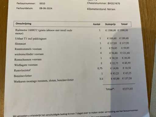• Papieren: Facturen van motorplaatsing en diverse werkzaamheden aanwezig