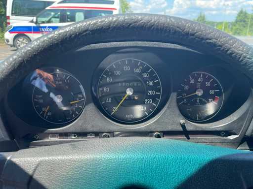 MOTOR DRAAIT; KOPLAMPEN GEÏNSTALLEERD; Banden Winterbanden Firestone op originele Mercedes lichtmetalen velgen, met noodstoelen achter, radio, zwart lederen bekleding.