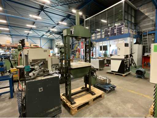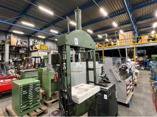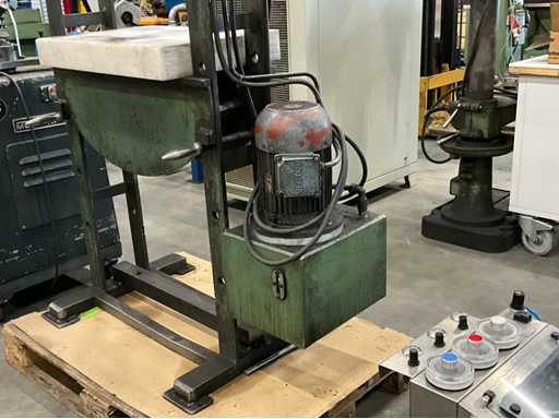 in de hoogte verstelbare tafel; ertalon blad; tafelmaat 630x420 mm; afstand tussen de kolommen 640 mm; maximale doorlaat circa 800 mm; voorzien van hydraulische unit;