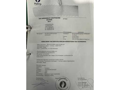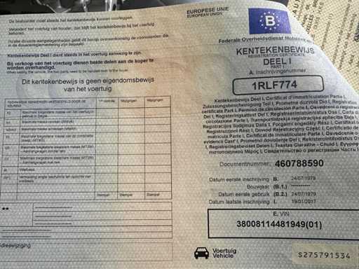 - Inschrijvingsbewijs: Niet aanwezig; de koper ontvangt een attest van verlies van inschrijvingsbewijs