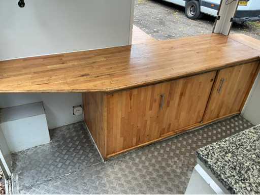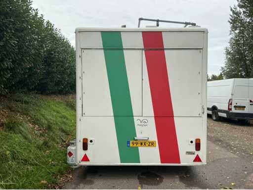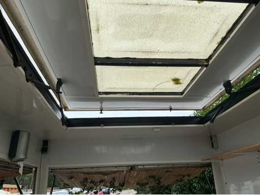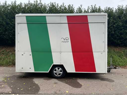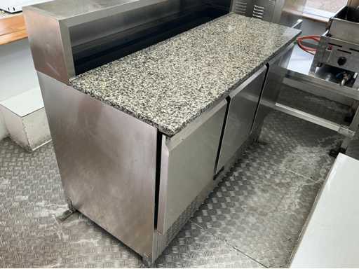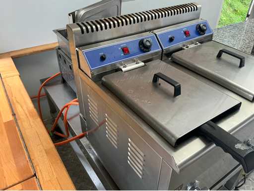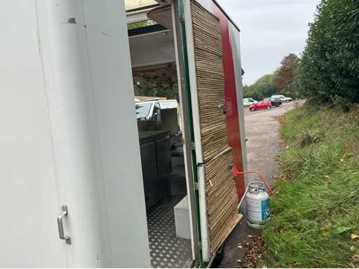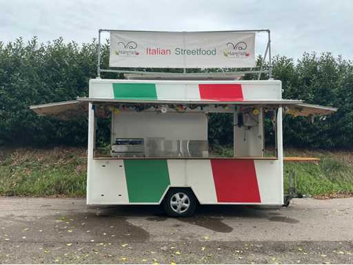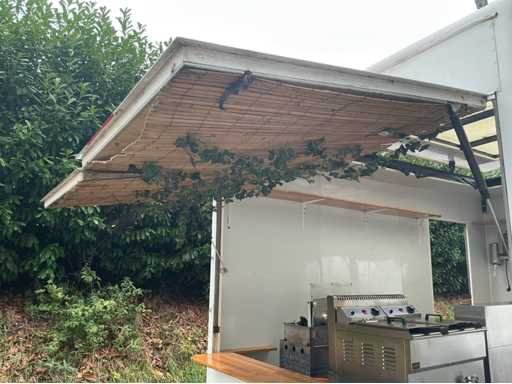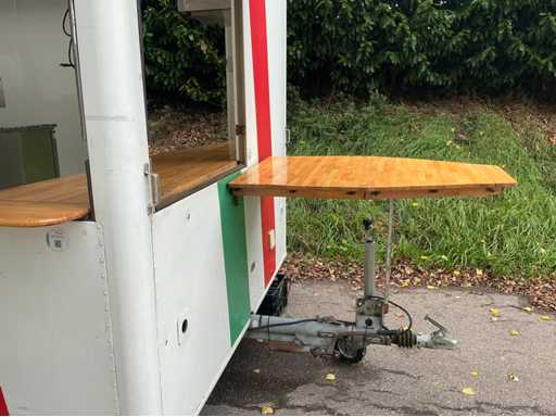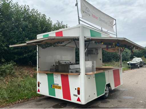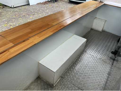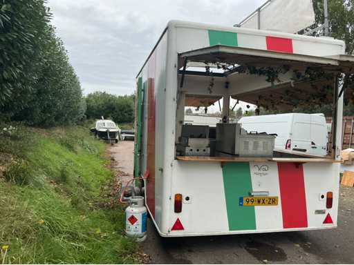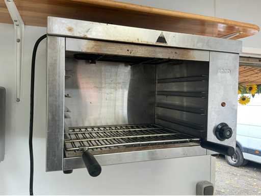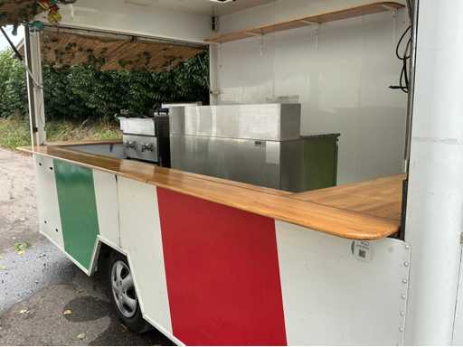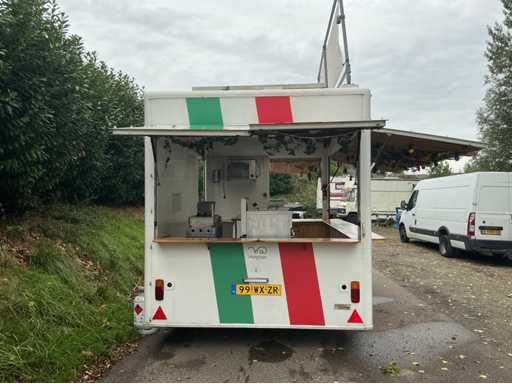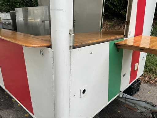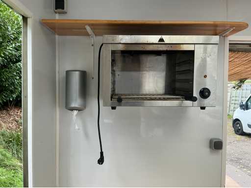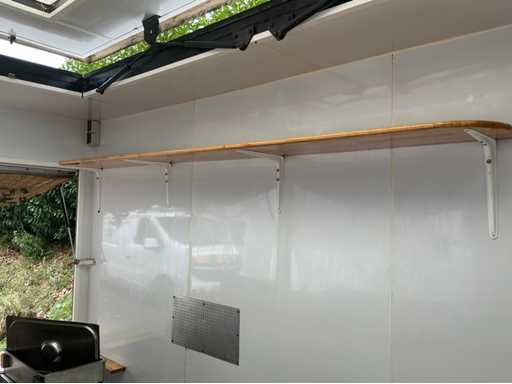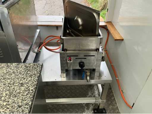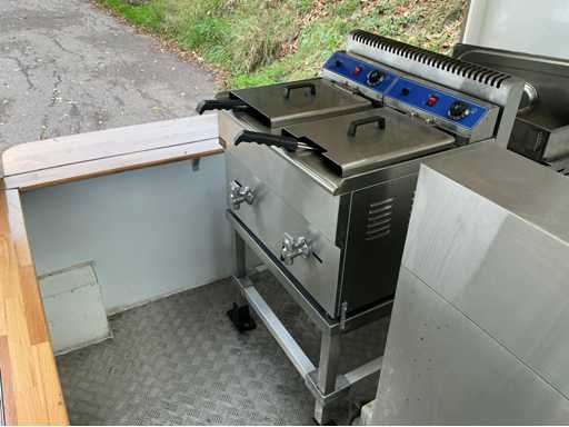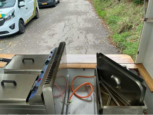 Inclusief dubbele frituurpan, 2x 8 Liter, voorzien van thermostaat. Visfrituurpan 16 Liter, voorzien van veiligheid hitteregelaar. Alle drie op gas aangesloten. Volledig gerestaureerd in 2020. Wanden zijn bekleed met HACCP panelen: brandveilig en makkelijk schoon te maken. Elektra 2 jaar geleden door elektricien vernieuwd. Schokdempers en banden zijn in 2022 vernieuwd. Open grill, koelwerkbank heeft een granieten plaat en ingebouwde saladiere. Beide aangesloten op elektra. Stroomvoorziening kan 3,5 kW aan. Kleine schade aan wieldop.