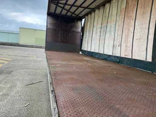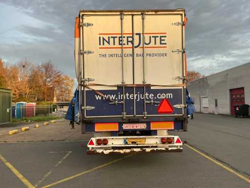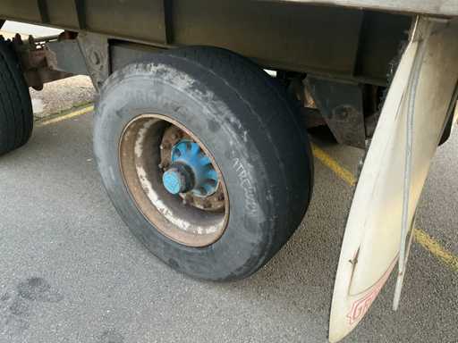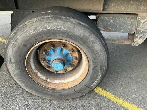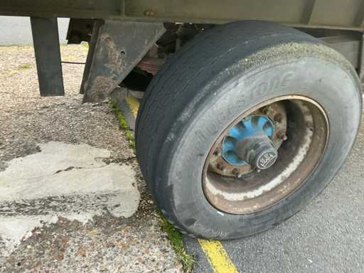 Max massa 32000kg, wielbasis 902cm; Hart koppeling achterzijde trailer 1150cm, bladgeveerde BPW assen, langdurig stil gestaan, schuifzeilen kapot