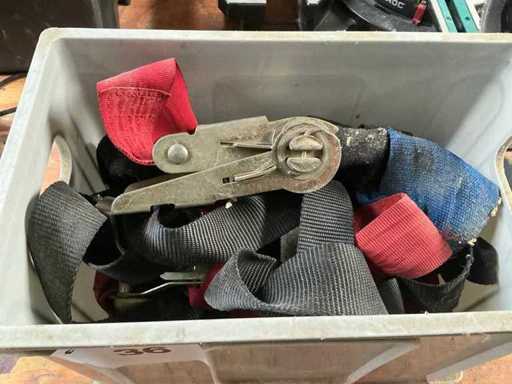Compleet met pvc opbergbox inhoudende enige diverse spanriemen
