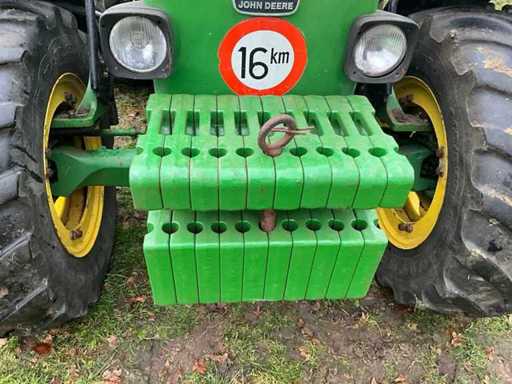 Voorzien van 4-Cil. “John Deere” Dieselmotor; aftakas: 540/1000 rpm; 2 dubbelwerkende hydraulische ventielen; 10 frontgewichten a 40 kg per stuk;
