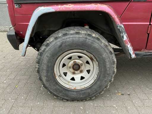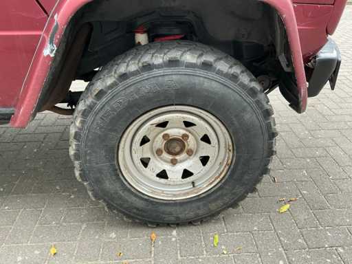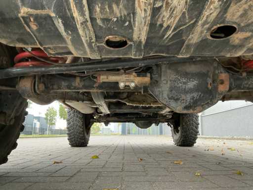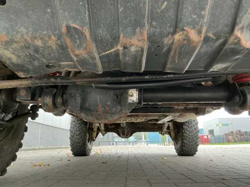 Afmetingen: 210 cm hoog, 180 cm breed, 420 cm lang. Voorzien van: 6 cilinder dieselmotor, handgeschakelde 5 versnellingsbak, korte wielbasis, elektronisch inschakelbaar sperdifferentieel voor en achter, hoge lage giering, elektrische 3,5T lier, trekhaak, aangepaste veren en schokdempers, schuiframen, kunststof brandstoftank, elektrische ramen, ABS, hoofdstroomschakelaar.