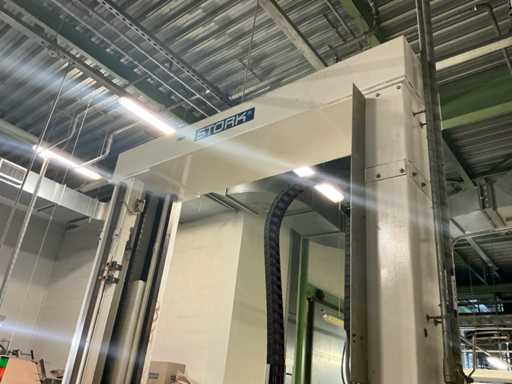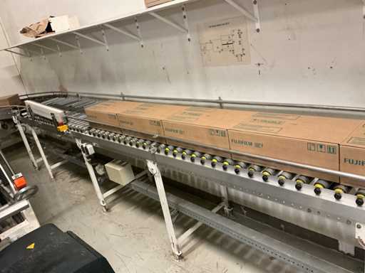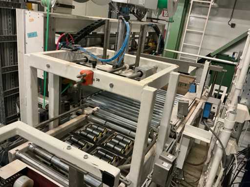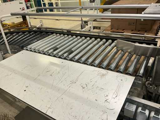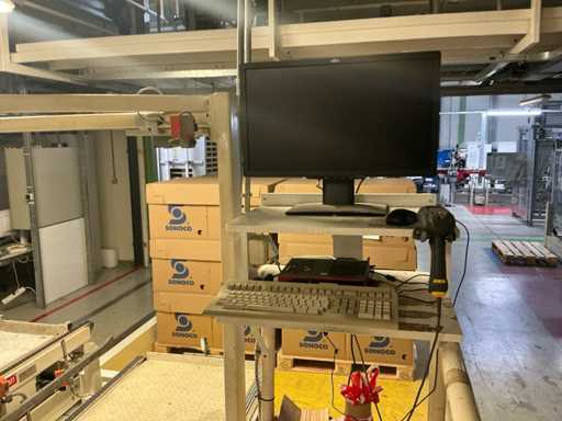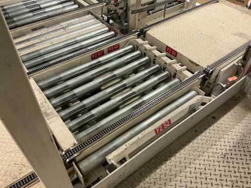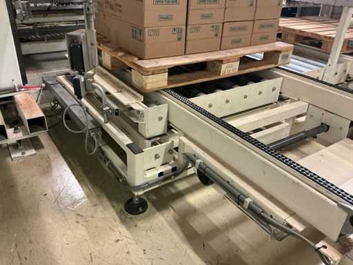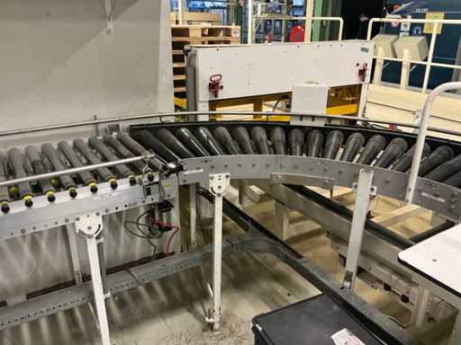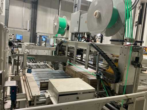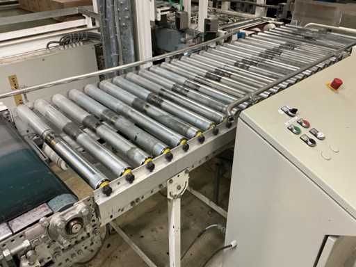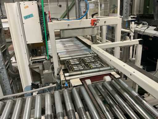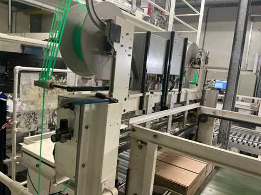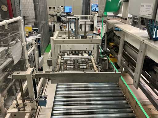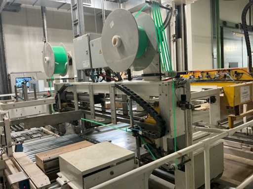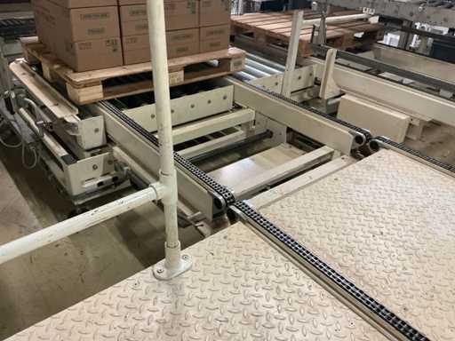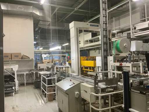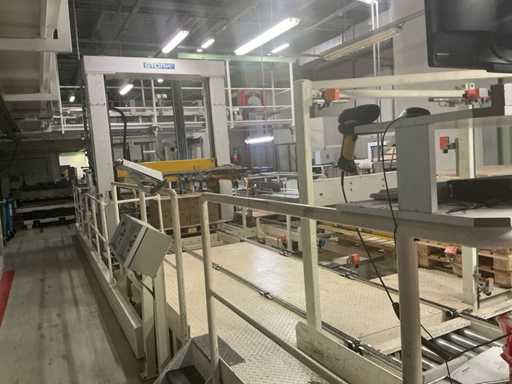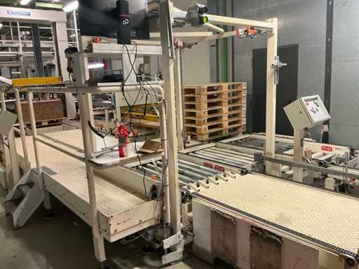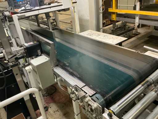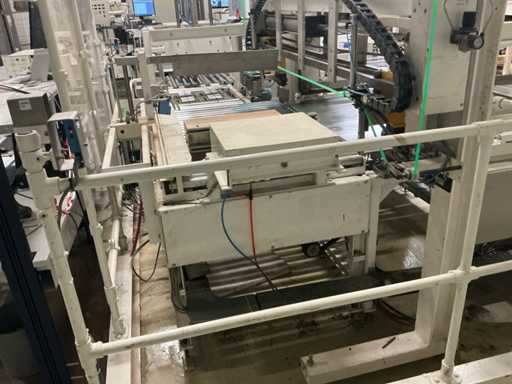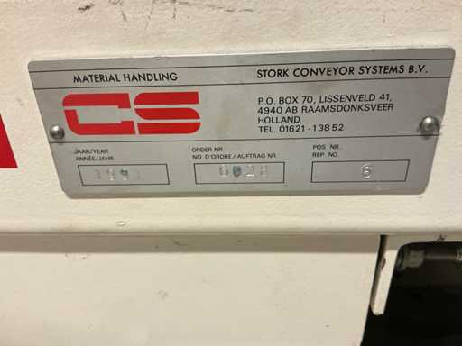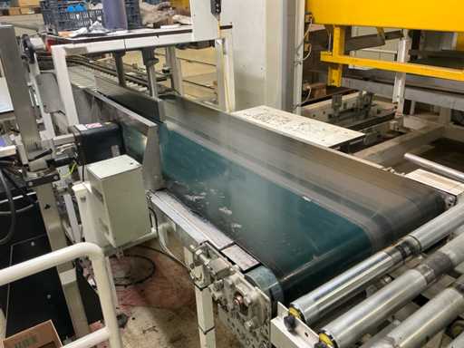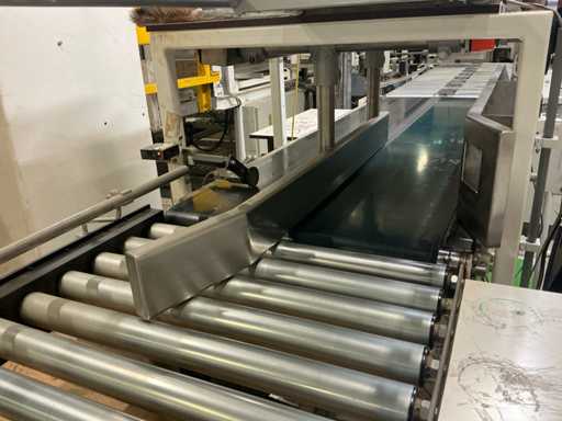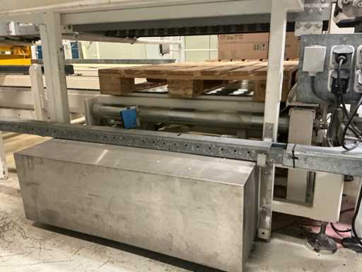 Voorzien van: De complete installatie bestaat uit een Stork Bepak C2000 palletiseermachine (1991) met 27 meter transportbanden en een Stork Conveyor Systems handlingmodule (1988) voor het positioneren, centreren en verplaatsen van pallets, samen goed voor een capaciteit van 8–20 pallets/uur, geschikt voor EU- en blokpallets, gebouwd uit zware staalconstructies met PLC-besturing, veiligheidsvoorzieningen en elektromotorische aandrijving. 27 meter band tot aan 1e pallet. In totaal met automatische car 38m. machine/linielijn waarmee producten automatisch worden opgestapeld (gepaletiseerd) op pallets, vaak in combinatie met een transportband (in dit geval ongeveer 27 meter lang). LET OP! Demontage en levering van de machine zal plaats vinden in Februari 2026!
