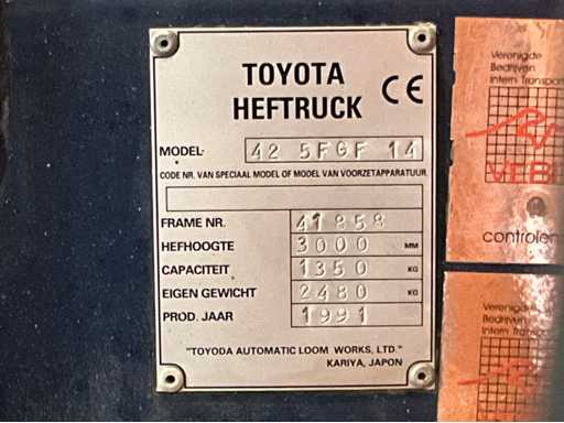 1991 Toyota 42 5FGF 14 Vorkheftruck
