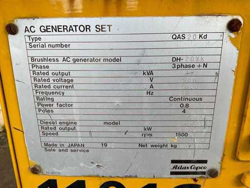 1992 Atlas Copco QAS20Kd Stroomgenerator
