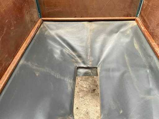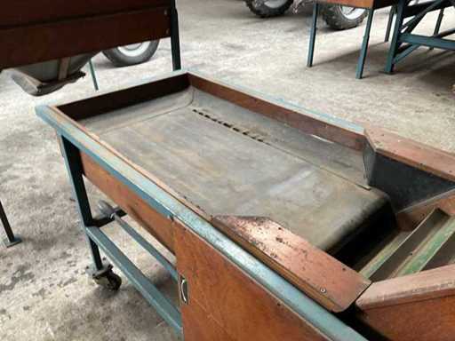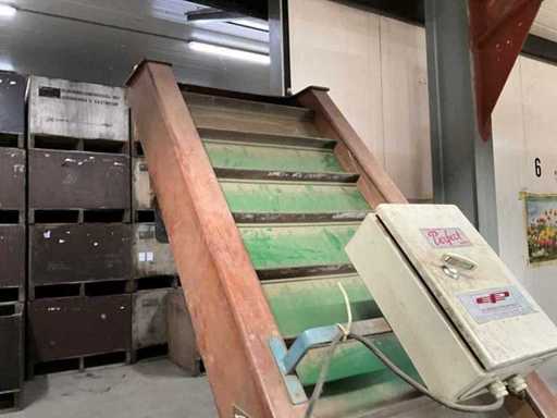 bestaande uit stortbunker 1470x1180x1600 mm, in hoogte verstelbaar, mobiele elevator opstelling, band breedte 450 mm, elevator breedte 470 mm, opvoer hoek verstelling, storthoogte 1600 mm inclusief frequentieregeling.