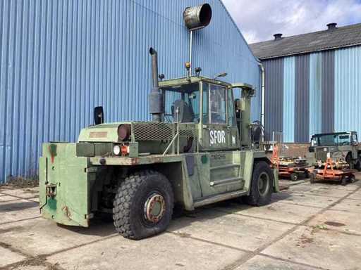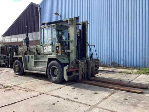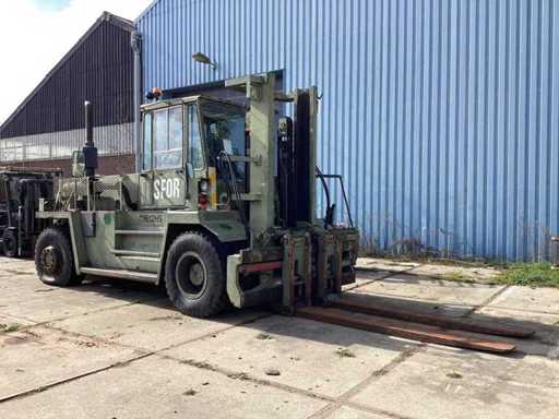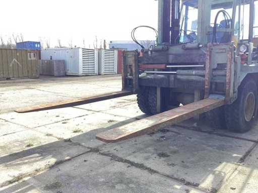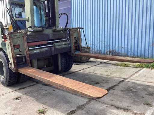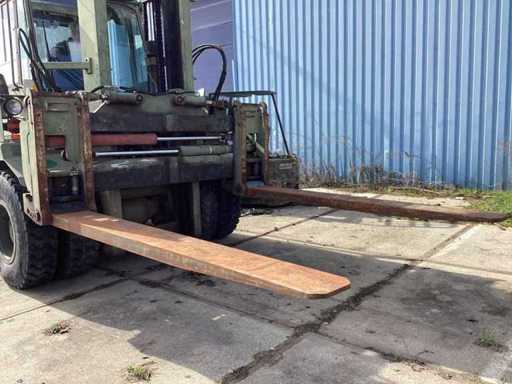 Renault dieselmotor; 6 cilinder; 4x4 aangedreven; opklapbare vorken; gaat niet van de handrem af.