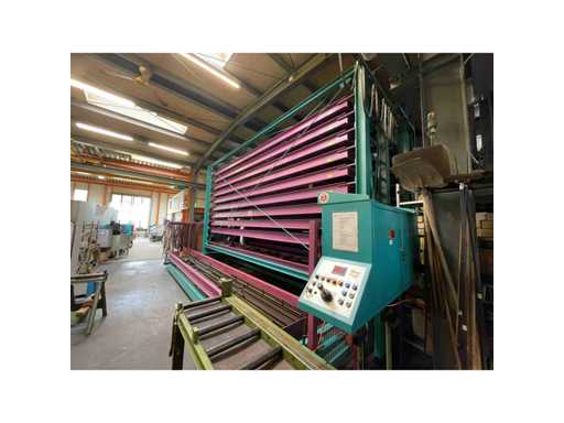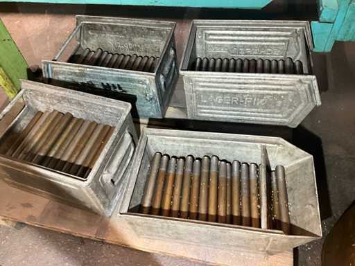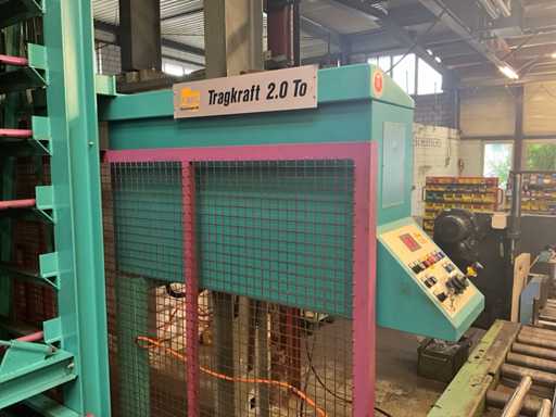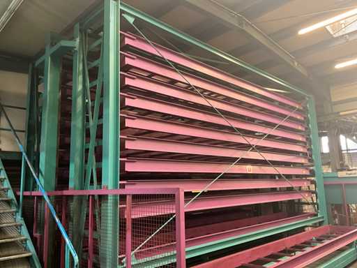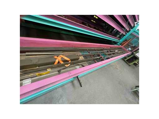 Met 23 cassettes binnenafmetingen 6500x800x210 mm, laadgewicht per cassette 2000 kg, totaal laadgewicht 46.000 kg, totale afmetingen 8390x5000x4600 mm, inclusief 1 lot doornen voor materiaalscheiding, zonder inhoud, voor meer details zie foto's