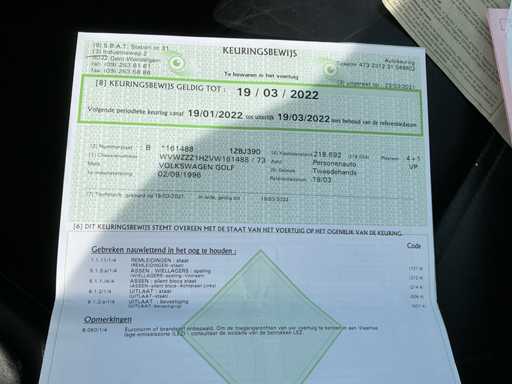 Volkswagen Golf VR6 uit 1996 met 223000 kilometer op de teller. Deze wagen is zowel binnen als buiten in goede staat. Motorisch geen problemen. Problemen met remleidingen, silent blocs en wiellagers werden opgelost. Klein beetje roestvorming aan de uitlaat. Kleine lakschade (zie foto’s). Klemmen omhulsel stuurhuis afgebroken (zie foto). Wagen werd nog nooit ingeschreven in België maar alle documenten zijn aanwezig.