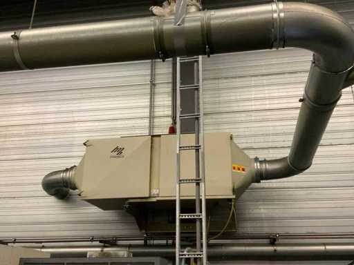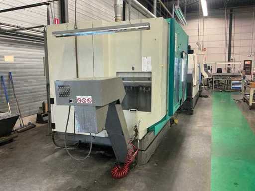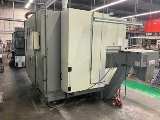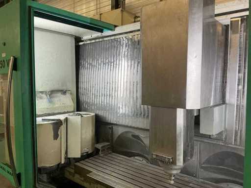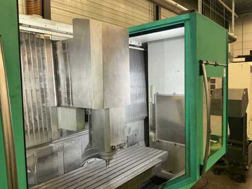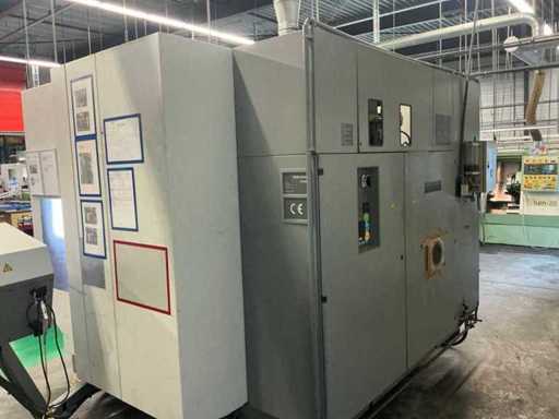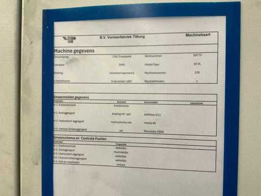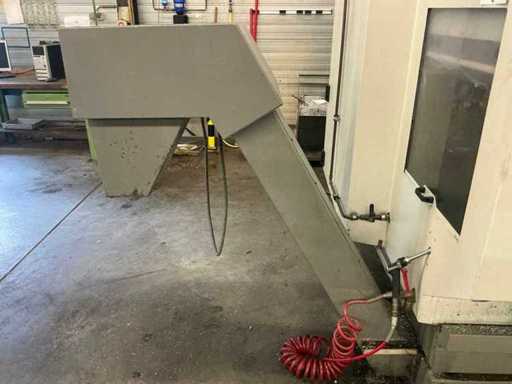 Verticaal bewerkingscentrum Voorzien van gereedschapsmagazijn met in totaal 24 (2x12) posities HSK gereedschapshouder, wandgemonteerde afzuiginstallatie Draaitafel rotatie en kanteling 360 graden Spaanafvoerband Blechtechnik 104045 uur aangestaan