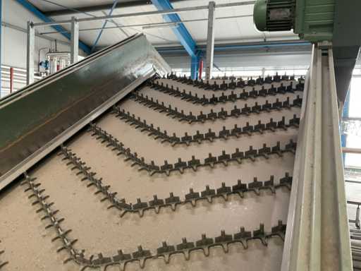 Snelheid opvoerband frequentie geregeld, framehoogte instelbaar, 1650x1650mm stortbunker opening, centrale opstart mogelijk