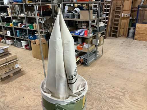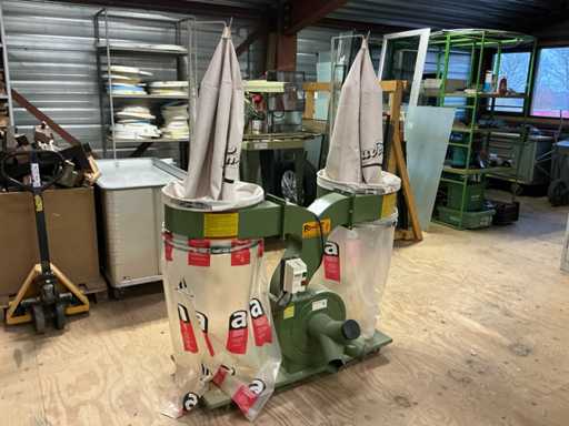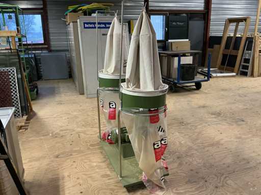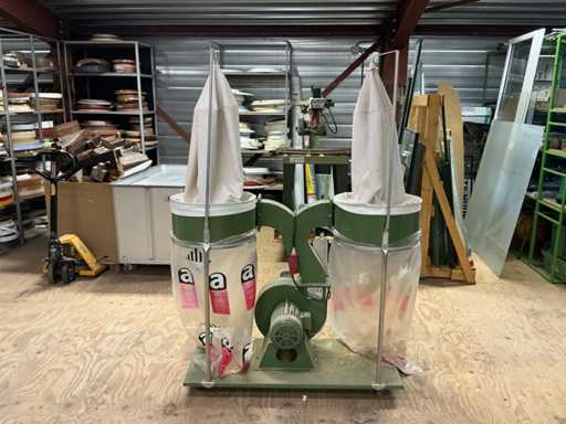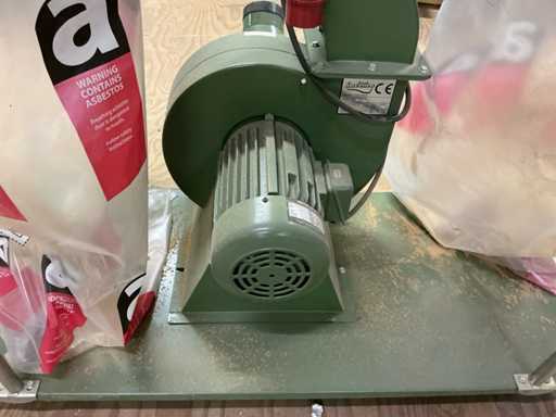 Voorzien van: afzuiginstallatie met grote capaciteit voor industrieel gebruik, metalen ventilator, 400V / 50Hz, motorvermogen 1,5kW, 3 aansluitingen.