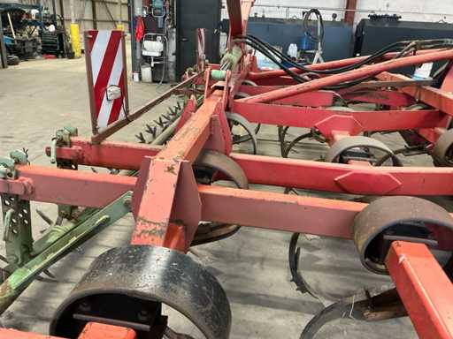 Cultivator, 13 tanden en verkruimelrol, met verlichting en breedte borden, hydraulische opklapbaar.