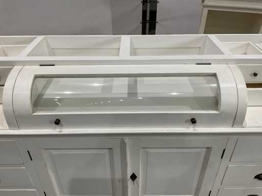 1x circa 187 cm breed; 98 cm hoog; 55 cm diep; opzetstuk circa 201 cm breed; 118 cm hoog; 41 cm diep