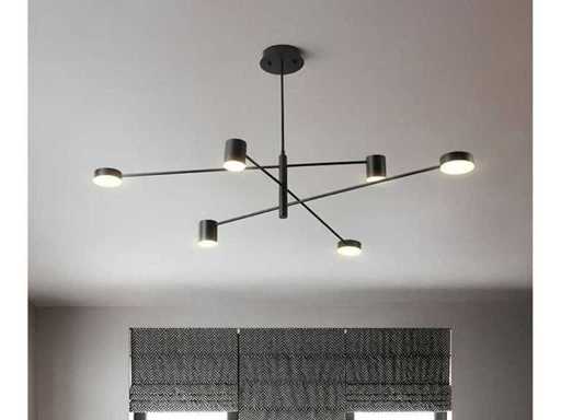 Eliko 7 design hanglamp zwart, geschikt voor ontvangstruimten, vergaderplekken, werkkamers of de showroom, maar ook in de woonkamer, vide of andere woon en werk ruimtes. Bestaat uit 7 x afzonderlijke draaibare lampen welke voorzien zijn van een opalen warm witte led lichtbron. Dankzij de flexibele hoogte verstelling is het mogelijk om de snel en eenvoudig afzonderlijk van elkaar te kantelen of te verstellen, zowel geschikt voor klassieke als moderne interieuren. Aantal lichtbronnen: 7. Afmeting, verstelbaar: Ja. Lichtbundel ca 110 graden. Lichtkleur: Warm wit. Aansluiting: 230 Volt. Kleur: Zwart mat Bijzonderheden: Dit betreft een nieuw product.