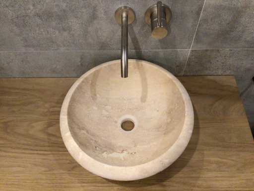 2 x Natuursteen Travertin Beige Waskom 40,6x15 cm