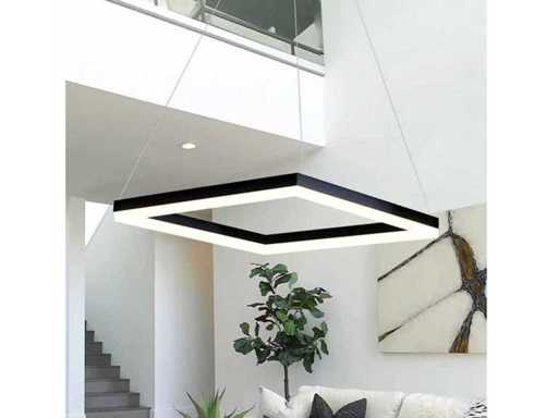 Quadra hanglamp geeft een unieke uitstraling en past in spreekkamers, ontvangstruimten, vergaderplekken of in de showroom, maar ook in het thuiskantoor, in de woonkamer of keuken. De hanglampen beschikken over een onafgebroken opalen led lichtbron welke een uniek licht effect geeft. De montage is eenvoudig en kan dankzij de lichtgewicht eigenschappen snel plaats vinden, de lamp is in hoogte te verstellen en te positioneren. Product eigenschappen: Aantal lichtbronnen: 1. Afmeting ca.: 80 cm x 80 cm.Lichtbundel ca 140 graden. Lichtkleur: 3000K Warm wit. Aansluiting: 230 Volt. Kleur: Zwart. Afwerking: Mat. Dit betreft een nieuw product