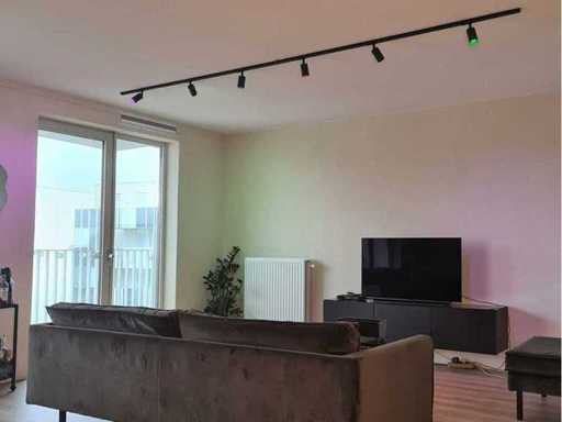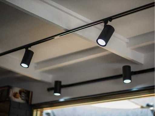 Rail systeem geschikt voor werkruimten, ontvangst plekken of de showroom, tevens geschikt voor in de keuken, woonkamer of in het thuiskantoor. Snel te plaatsen, montage aan het plafond of als hang/pendelsysteem mogelijk, plaatsing zowel in rechte delen als in hoeken mogelijk. . Kleur mat zwart. Bijzonderheden: Dit betreft een volledig nieuw product, inclusief eindkappen.Te gebruiken met alle 1 fase rail armaturen in deze veiling