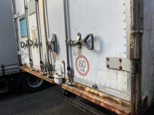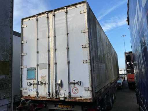 Afmetingen 13600x2550x2820 mm, eigen gewicht 6000 kg, passend op 45 voet chassis, stokkenwand, rollenbaan systeem.