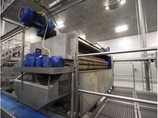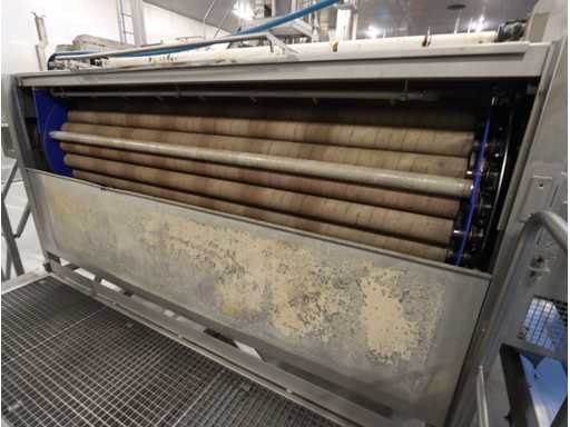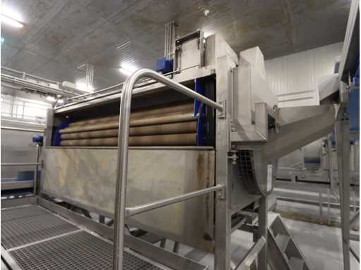 Ø circa 900 mm werklengte circa 2500 mm, voorzien van dubbele aandrijving, op RVS frame, zonder bordessen