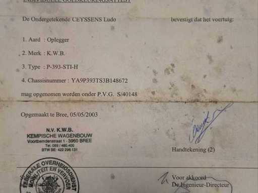 Deze KWB schuifzeil oplegger uit 2003 is een robuuste en betrouwbare 3-assige semi-remorque, gebouwd door Kempische Wagenbouw (Belgische topkwaliteit).