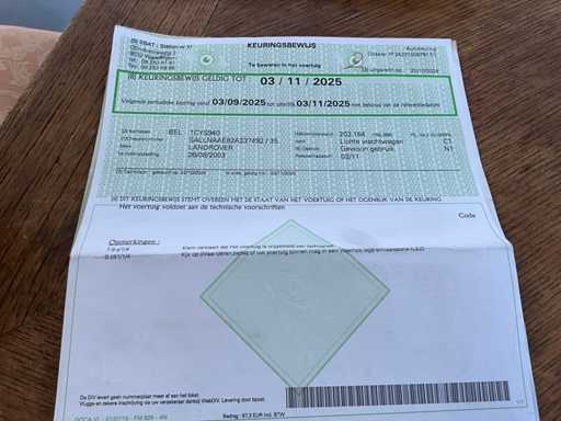 • Laatste keuring uitgevoerd op: 22/10/2024