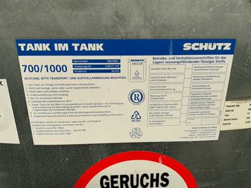 2003 Schütz 700/1000 Verticale opslagtank met 500L mazout