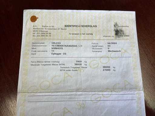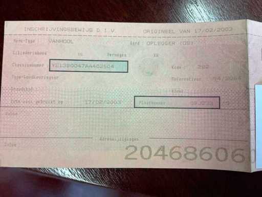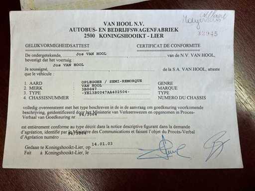 Van Hool gesloten trailer in gebruikte staat. Papieren in orde. Zie foto’s voor huidige toestand.