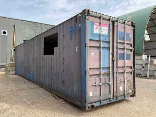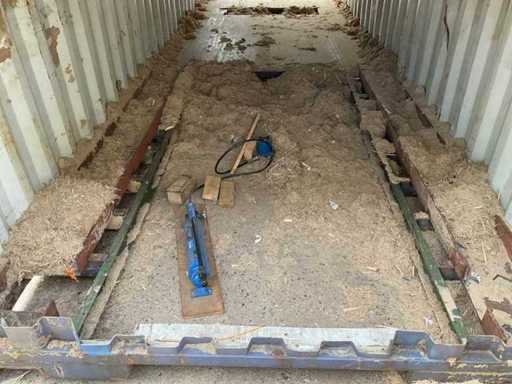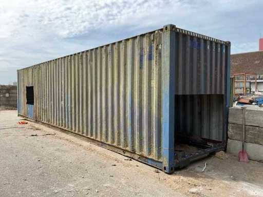 Aangepaste en bewerkte container, delen zijn gezaagd en bewerkt.
