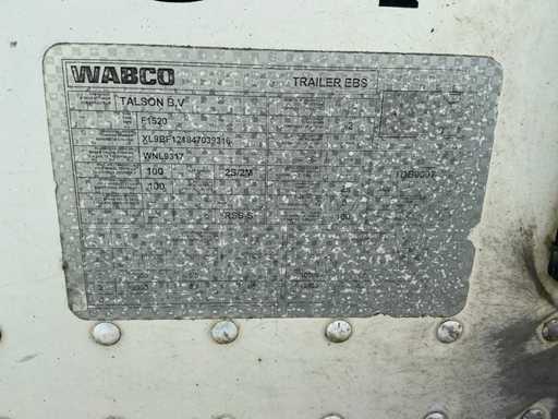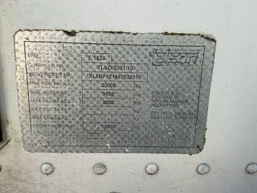Max massa 30000kg, afstand hart koppeling tot achterzijde voertuig 1200cm , lengte totaal 1383cm, breedte 255cm, voorzien van luchtgeveerde BPW assen