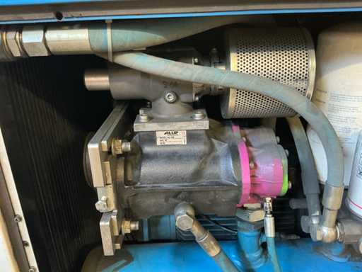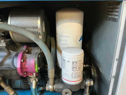 Voorzien van: noodstop, display, geluidsisolatie, 8 bar, 3885 belaste draai uren.
