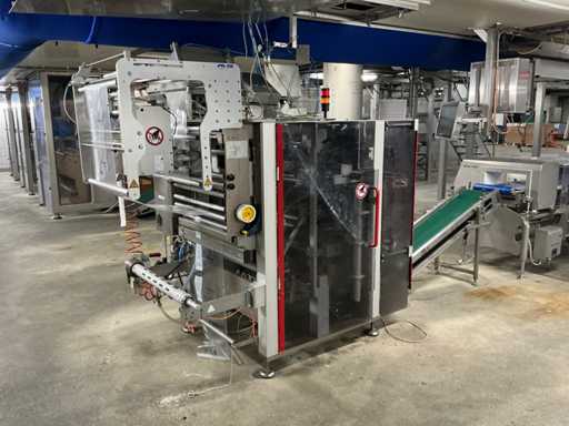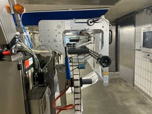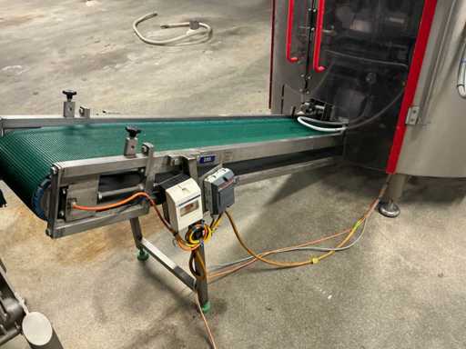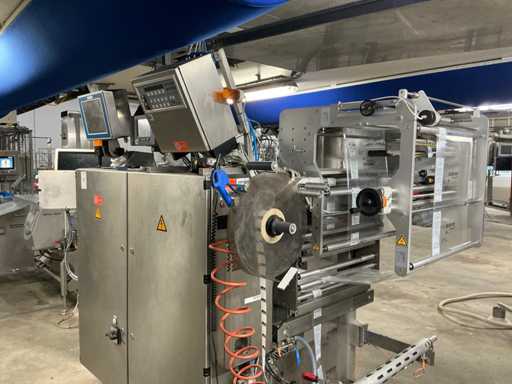 Folie rolbreedte 500 mm, voorzien van “Markem Imaje” inkjet codeerunit, digitale uitlezing en opvoer transportband