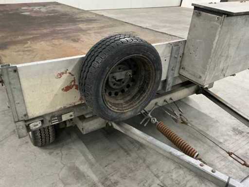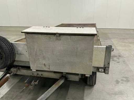 Voorzien van opbergkist, reservewiel, oprijplanken, oplooprem en handrem