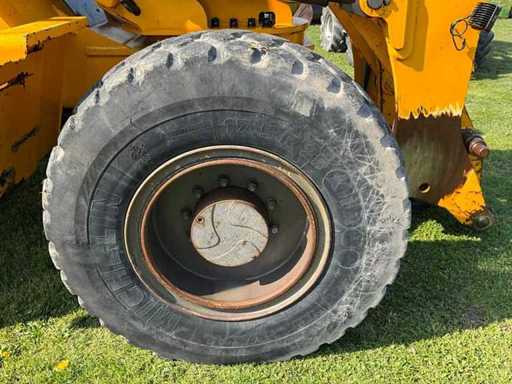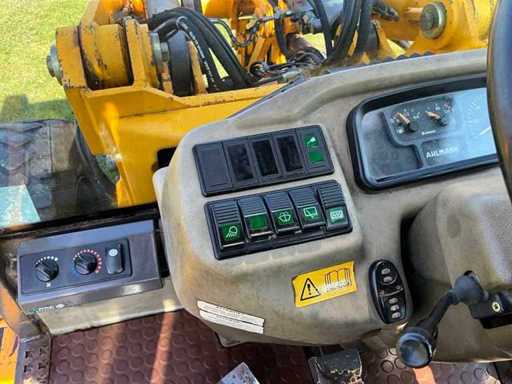 voorzien van 4 wielbesturing, laadboom draaikrans, hydraulische snelwissel, joystick bediening, extra functie op de laadboom, automatische vetsmering