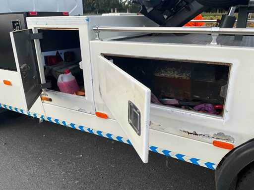 Voorzien van: 2x hydraulische winch, bril met diverse beugels, hydraulische kraan, extra LED zwaailichten, enkele extra attributen