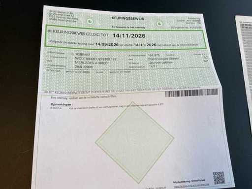 Volgens het aanwezige keuringsbewijs is het voertuig goedgekeurd en is de keuring geldig tot 14/11/2026. Het keuringsdocument vermeldt dat het voertuig op het moment van keuring voldeed aan de technische voorschriften. Er zijn geen herkeuringsverplichtingen vermeld op het meest recente keuringsbewijs.