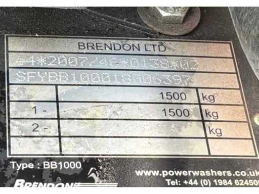 2007 Brendon Powerwashers BBW1000 Hogedrukreiniger aanhangwagen