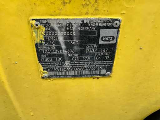 Voorzien van: Hatz dieselmotor, type: 4L41C,4 cilinders. Max. Rijsnelheid: 4 (km/h), 2300 rpm. Centrale vetsmering onderwagen, Joystick bediening.