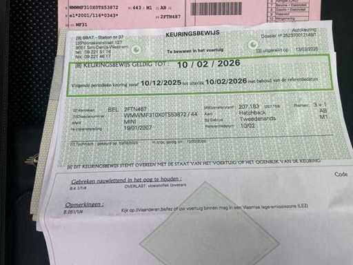 - Keuringsrapport geldig tot