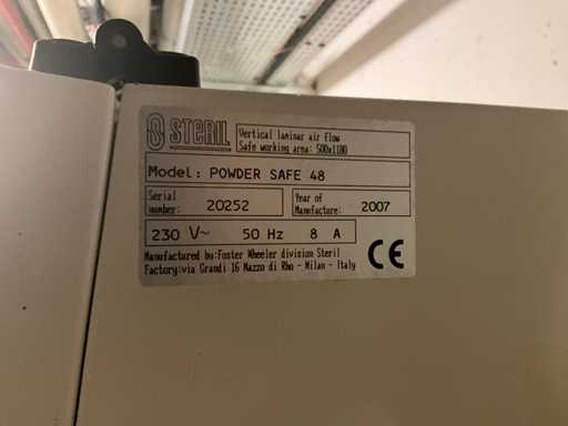 2007 steriel STERIEL POEDER VEILIG 48 Poeder Biosafety Kabinetten
