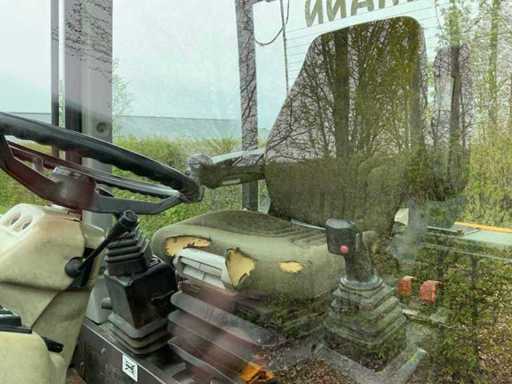 voorzien van laadboom met draaikrans, 4 wielbesturing, hydraulische snelwissel, startblokkering, Let op! barst in de voorruit