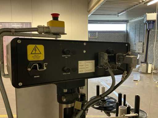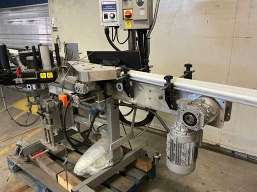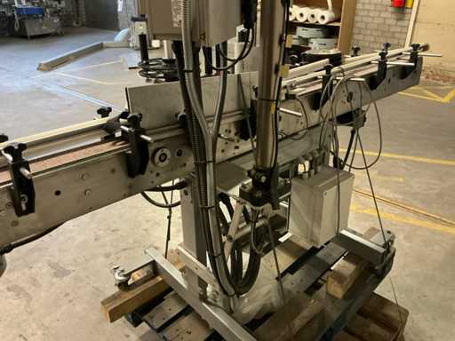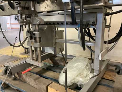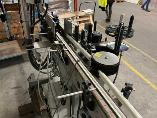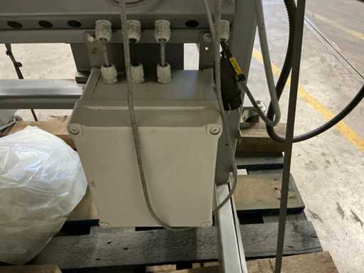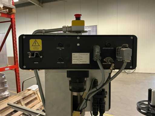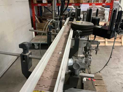 Onder andere voorzien van: bedieningshandleiding, instelbare aanvoer, verrijdbaar onderstel met stempels, bedieningskast, 220V aansluiting, noodstop. In werkende staat.