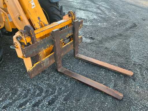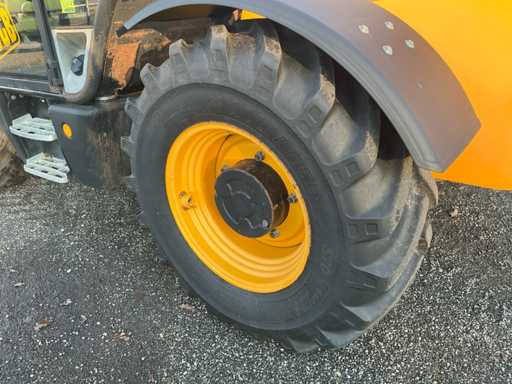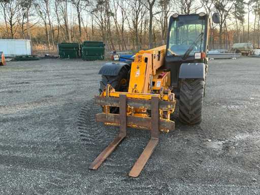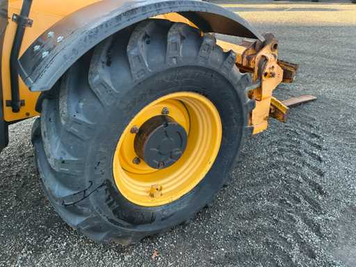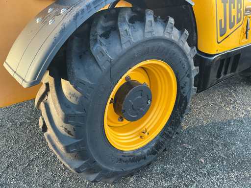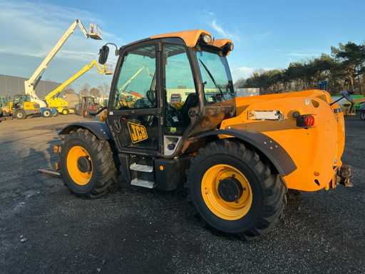 Voorzien van: JCB Dieselmax 74,2 kW (100 pk), 4-traps powershift (met koppelomvormer), hydraulische snelwissel, JCB Q-fit, trekhaak, werklampen, 7-polige stekker achterzijde, vorkenbord lepels 1150mm, aux. Aansluiting, ruitenwissers, mechanische geveerde stoel, verstelbare armleuning, verstelbare stuurkolom, joystick bediening, 4Ws, 4wd, 3 modi (voorwiel, vierwiel, hondengang), opbergruimte in cabine, radio, maximaal hefvermogen 4.100 kg, hefvermogen op maximale hoogte 2.500 kg, maximale hefhoogte 7,0, maximaal bereik vooruit 3,7 m, hefvermogen op maximaal bereik 1.500 kg, 32 km/u, totale lengte 4,99 m, totale breedte (over banden) 2,23 m, totale hoogte 2,49 m, eigen gewicht 7.600 kg, draaicirkel (buitenzijde banden) 3,7 m.