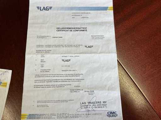 LAG gesloten trailer in gebruikte staat. Papieren in orde. Zie foto’s voor huidige toestand.