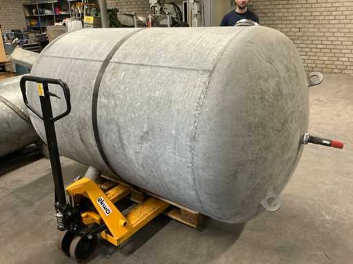 Voorzien van: overdruk ventiel, hijsogen, gegalvaniseerd, 3 poten, 1” aansluitingen, 2” aansluiting onderzijde.