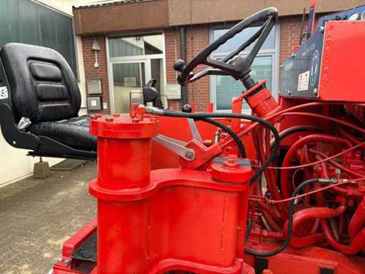 Hydraulisch-mechanische vierwielige koudfreesmachine voor asfalt en beton, freestrommel tussen de achterwielen, freesbreedte kan worden verkleind door halve schalen van elk 250 mm te demonteren, hydromechanische aandrijving, hydraulische sturing (vooras als stuuras, vooras als stuuras, vooras als stuuras, vooras als stuuras, hydraulische stuurmachine)