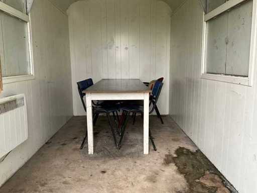 Voorzien van tafel en 5 stoelen en elektrische kachel